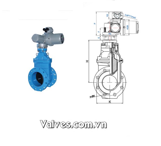 - Van cổng là bộ phận có thể gắn tay quay, được gắn vào trục của bộ điều khiển mô tơ điện. Van cổng có các ốc định vị được cố định để siết Bu Lông với đường ống.